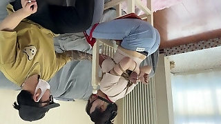 Horny Enema Slave Training with Showerhead Bound nd Kneeling