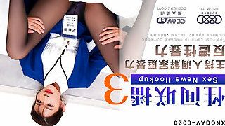 Hard fucked Asian reporter screams gorgeously and gets a cumshot, listen to that beautiful voice