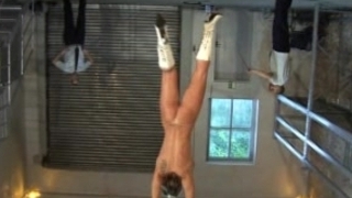 Beautiful and naked ginger-haired milf is on her knees tied up