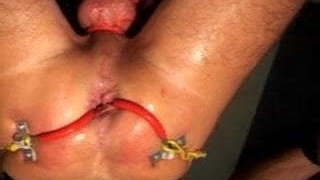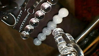 Having a iron hook in her pink pucker Juliette March gets masturbated with a toy