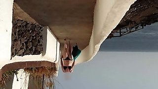 nippleringlover horny milf extreme pierced nipples and labia bare outdoors on the beach part one
