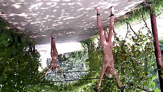 Honey is tied up and gets her orbs exposed by another girl as she fucktoys with her when there's nothing the chick can do