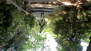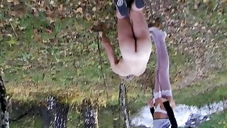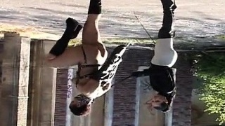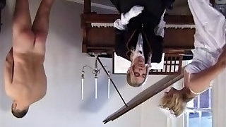Spectacular blonde in black stockings got her attractive feet worshipped by her handsome masculine gimp