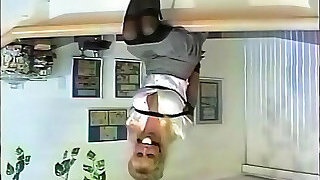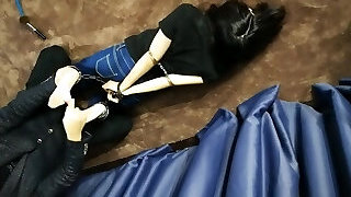 Extreme deep blowjob with duct tape tied hands and legs and cum inside throat with cute brunette
