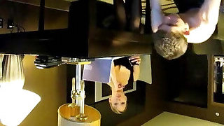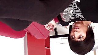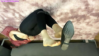After Work High Heels and Sweaty and Smell Feet Smelling and Worship by Footstool Chastity Gimp