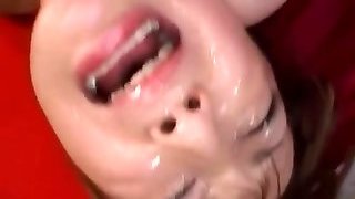 Hottie Ria Sunn in BTS of extreme bukkake gang-bang