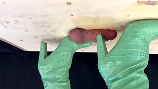 High-heeled Shoes Bootjob in Green Knee Boots (2 POVs) with TamyStarly - Ballbusting, Stomping, CBT, Trampling, Femdom, Shoejob