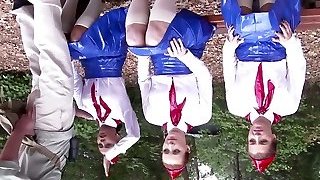 My PUBLIC park undressing! Small, cute teen with small breasts nearly got caught doing striptease!