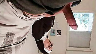The spa cleaner comes in to tidy and catches me touching myself in the sauna, she helps me complete spunking
