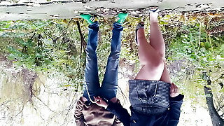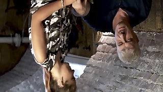 Un duo pervers a acheté une jeune brune esclave , en ténue fabulous et au corps de rve, afin de la soumettre brutalement au bord de la route