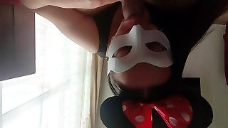A babe with makeup and pigtails was fucked deep in the facehole, then in the melons and got cum on face