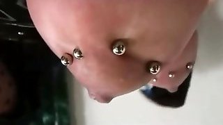nippleringlover insane milf pumping pierced tits inserting massive double rings in extreme pierced nipples outdoors