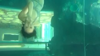 Breath holding underwater. Domination and rough bang-out. Nudist Regina Noir swimming, inhaling and fucking in the swimming po