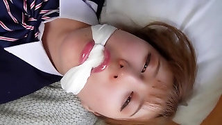 Black-haired In Purple Gets Roped, Mouth-stuffed, Mouth